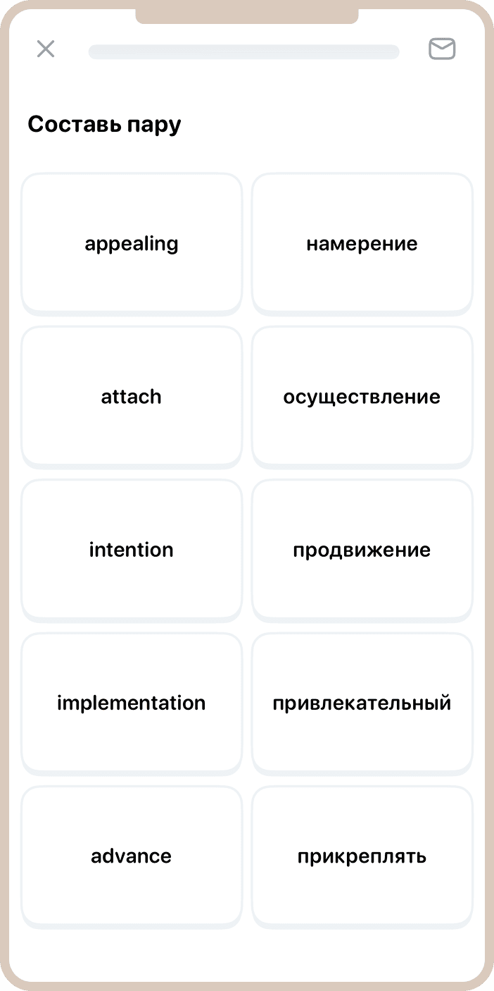 - Pairfect — игра на составление пар из слов и их переводов. Нужно правильно соединить слова изучаемого языка с их русскими эквивалентами, развивая навыки перевода и пополняя словарный запас.