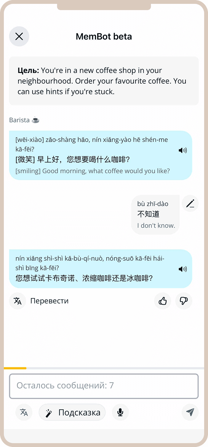 ИИ-сценарии и чат-боты — недавно добавленные в Memrise ИИ-инструменты, созданные для практики разговорных навыков, оказываются на практике не такими полезными. ИИ-собеседники предлагают шаблонные диалоги с ограниченным набором реплик и предсказуемыми сценариями. Создается впечатление, что эта функция была добавлена скорее для маркетинговой привлекательности, чем из реальной заботы о качестве обучения.