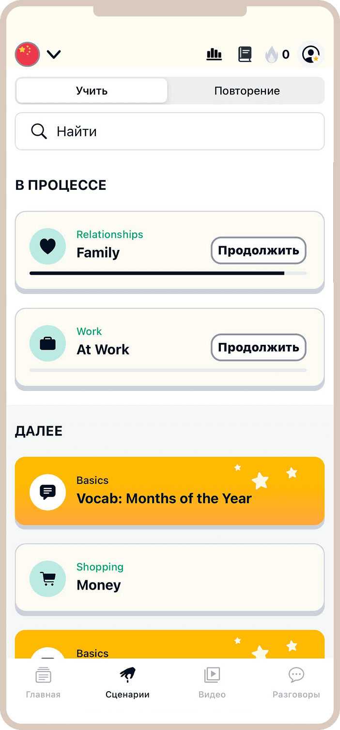 Время загрузки приложения и переходов между экранами минимально, что обеспечивает комфортное использование без раздражающих задержек. Особенно приятно, что видео с носителями языка загружаются быстро и без буферизации при стабильном интернет-соединении.
