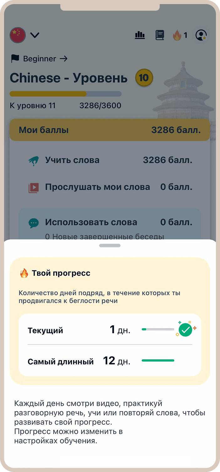 - Заниматься ежедневно, даже если всего 5-10 минут — регулярность важнее длительности сессий. Стрики (серии непрерывных дней) действительно работают как мотивационный механизм.