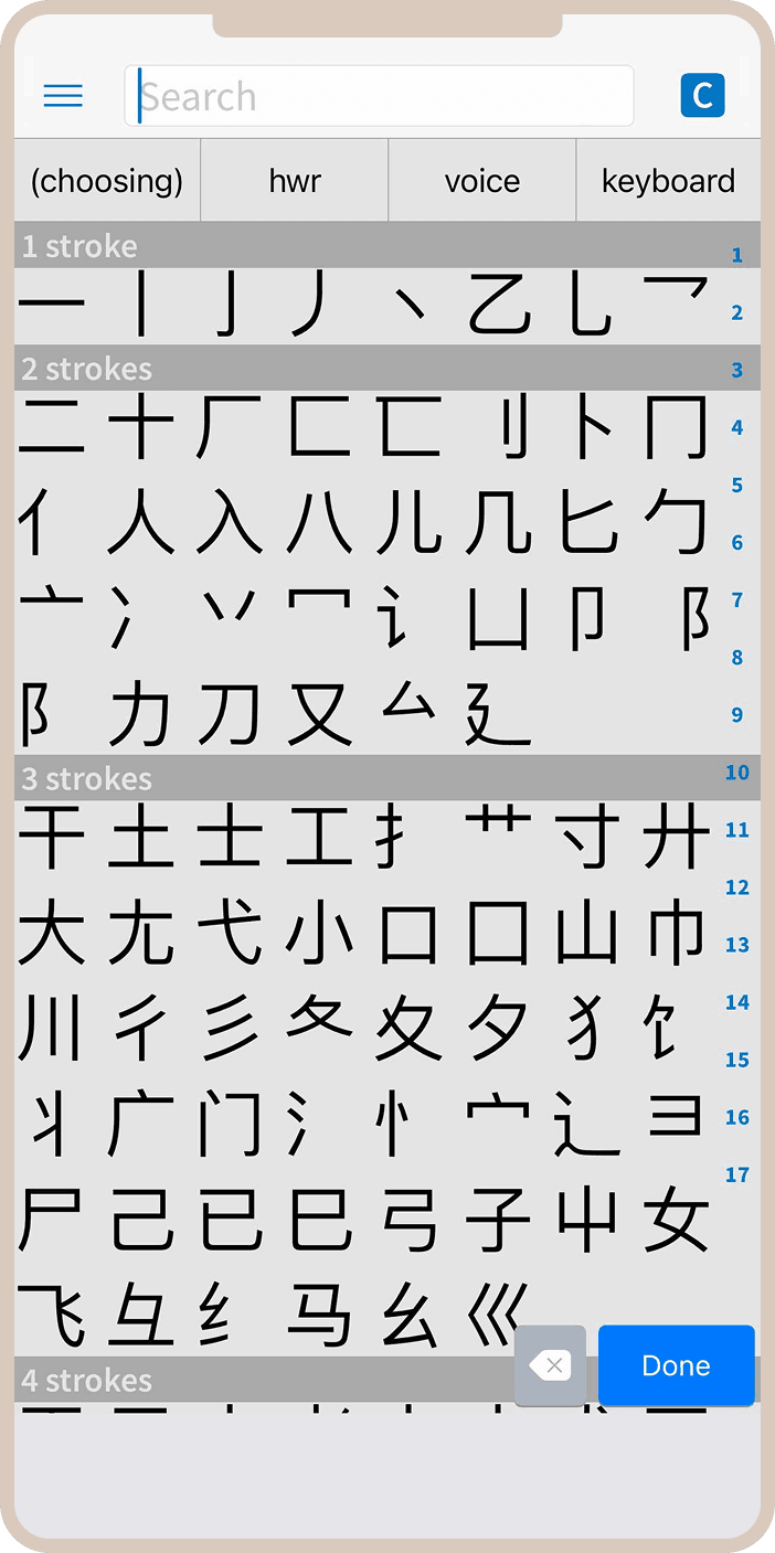 - Используйте рукописный ввод для поиска незнакомых иероглифов — это поможет быстрее запоминать их написание. Просто рисуйте знак пальцем, и приложение предложит варианты.