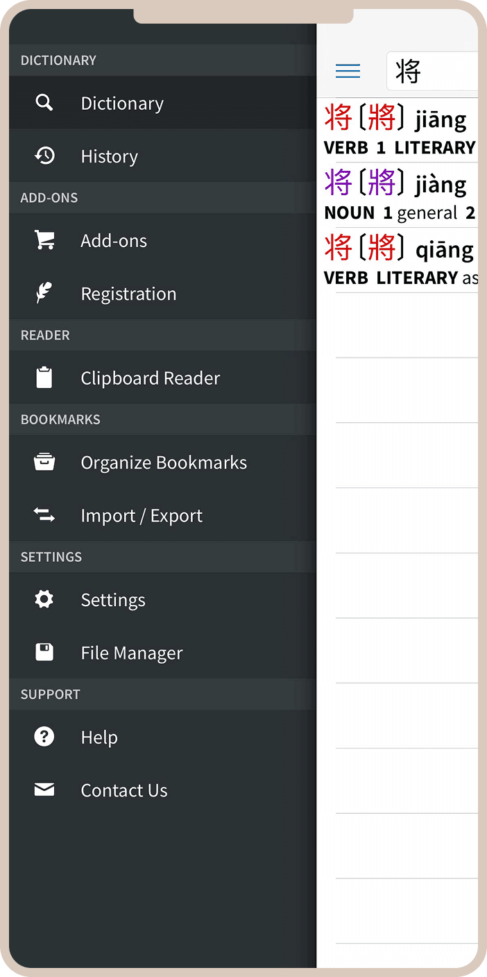 Словарь — это сердце Pleco. Здесь собраны десятки тысяч слов и выражений с детальными объяснениями, примерами употребления и аудиопроизношением. Поиск можно вести на английском, пиньине или вводя сами иероглифы. Особенно удобно, что для каждого слова показывается не только перевод, но и тон, которым оно произносится.