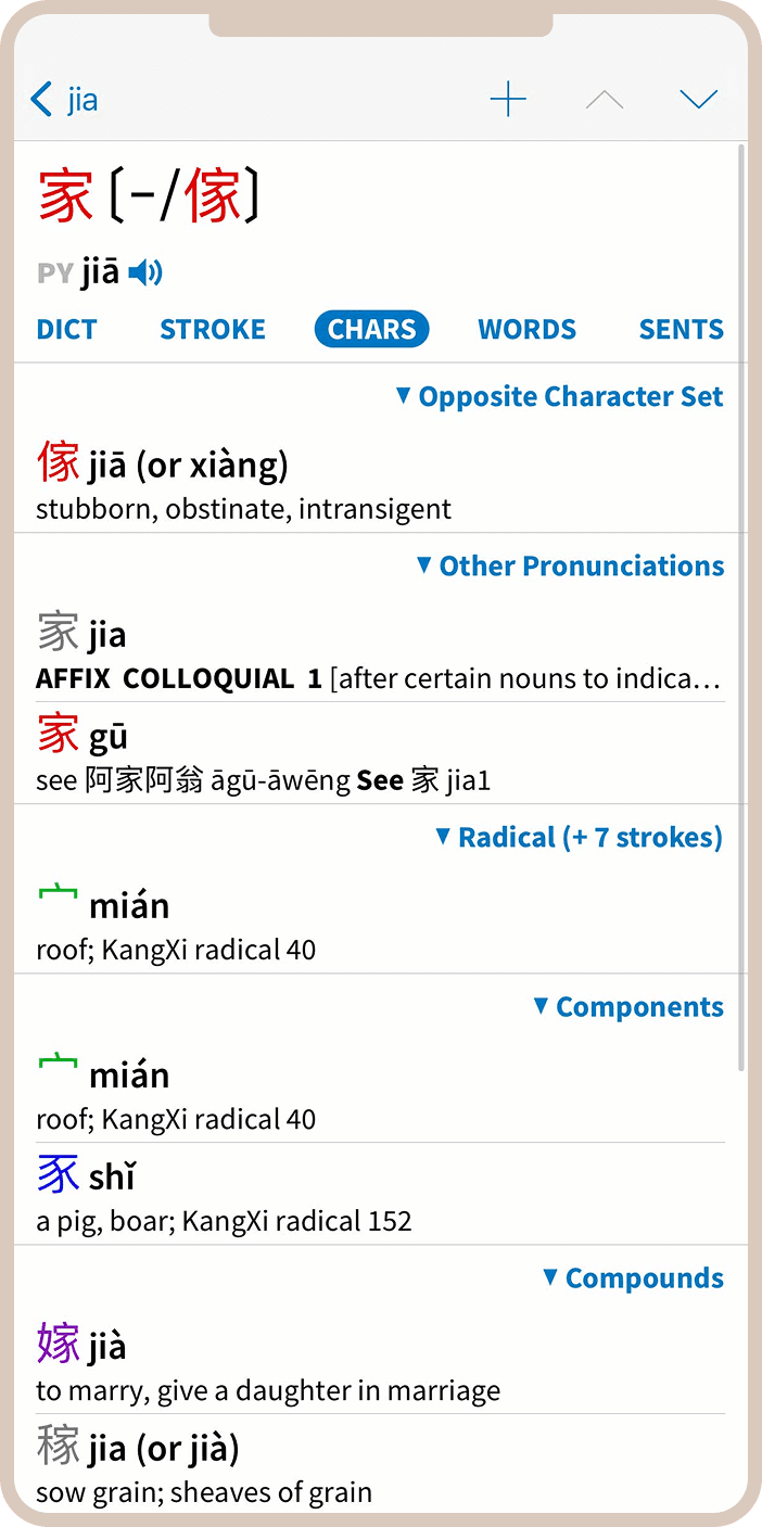 Приложение отлично справляется с разными системами транскрипции — пиньинь (стандартная романизация для материкового Китая) и системой Вэйда-Джайлза (встречается в академических и исторических текстах). Для изучающих кантонский диалект также есть поддержка системы Ютпхин.