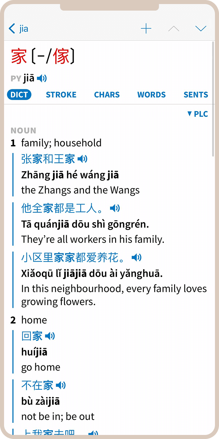 - Обратите внимание на произношение — для каждого слова можно прослушать правильное произношение. Используйте эту функцию регулярно, особенно для слов с трудными тонами.