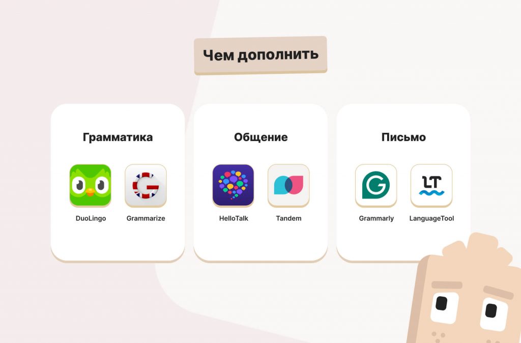 Такой набор инструментов создает многоуровневую систему изучения языка и поможет достичь комплексных результатов.
