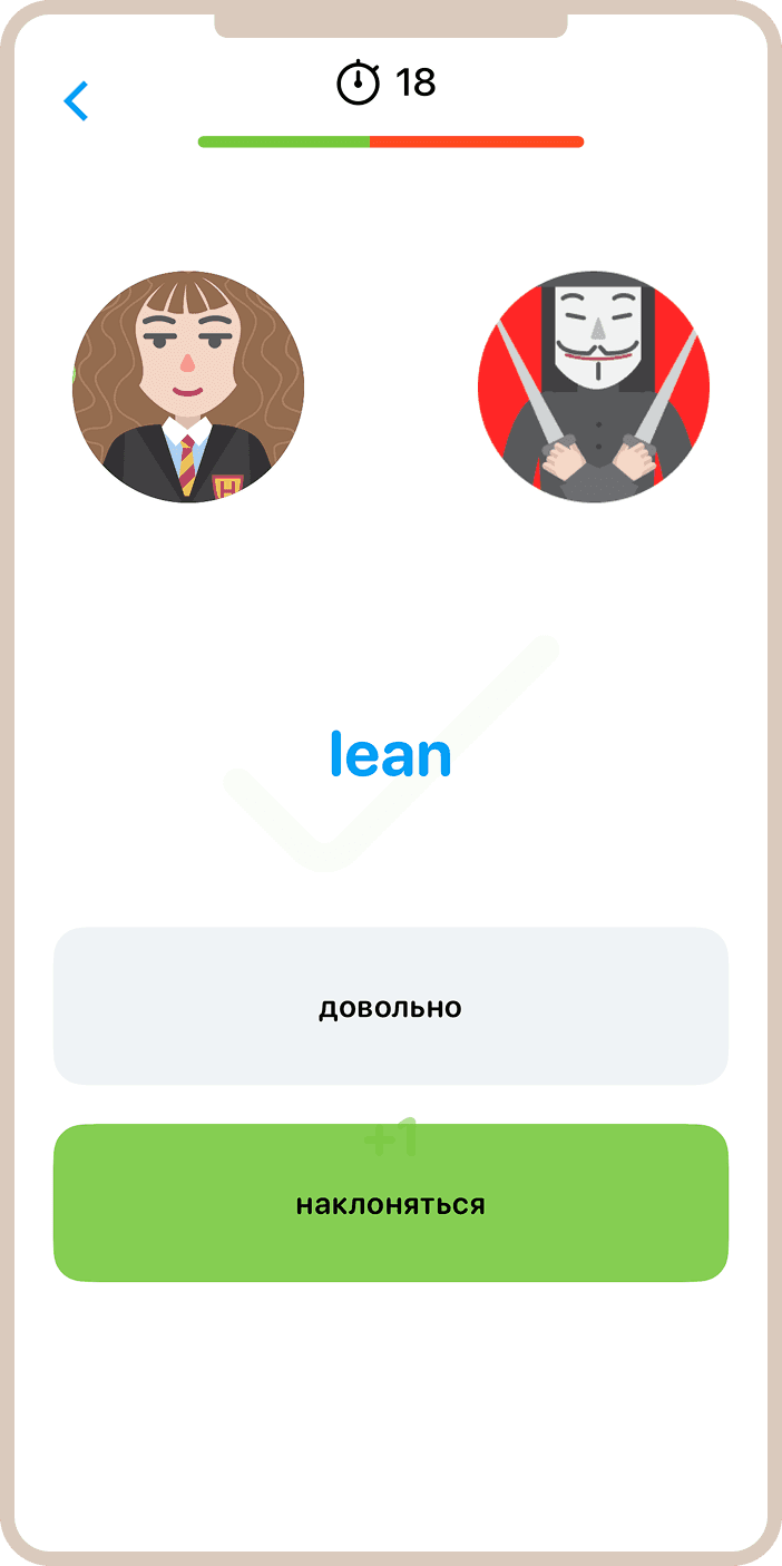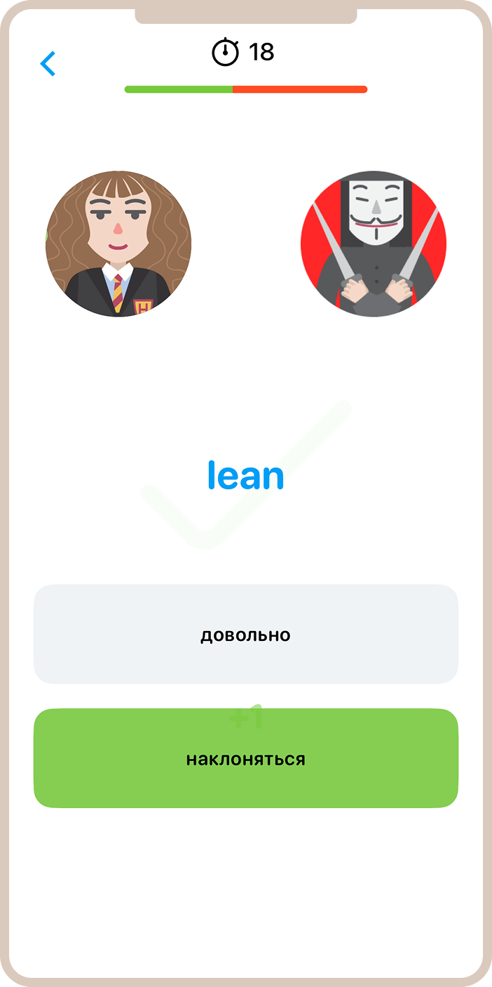 - Duelling — соревновательная игра с другими пользователями, где нужно выбирать правильные варианты перевода. Многопользовательский режим, который добавляет элемент соревнования в процесс изучения языка.