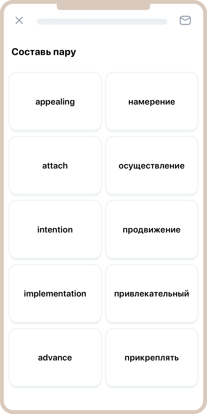 - Pairfect — игра на составление пар из слов и их переводов. Нужно правильно соединить слова изучаемого языка с их русскими эквивалентами, развивая навыки перевода и пополняя словарный запас.