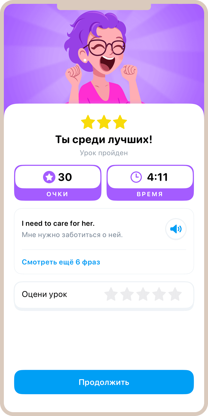 Приложение не дает расслабиться и просто развлекаться — каждый урок требует активного участия, запоминания, повторения. Но при этом процесс остается увлекательным благодаря увлекательному контенту и интересным форматам.