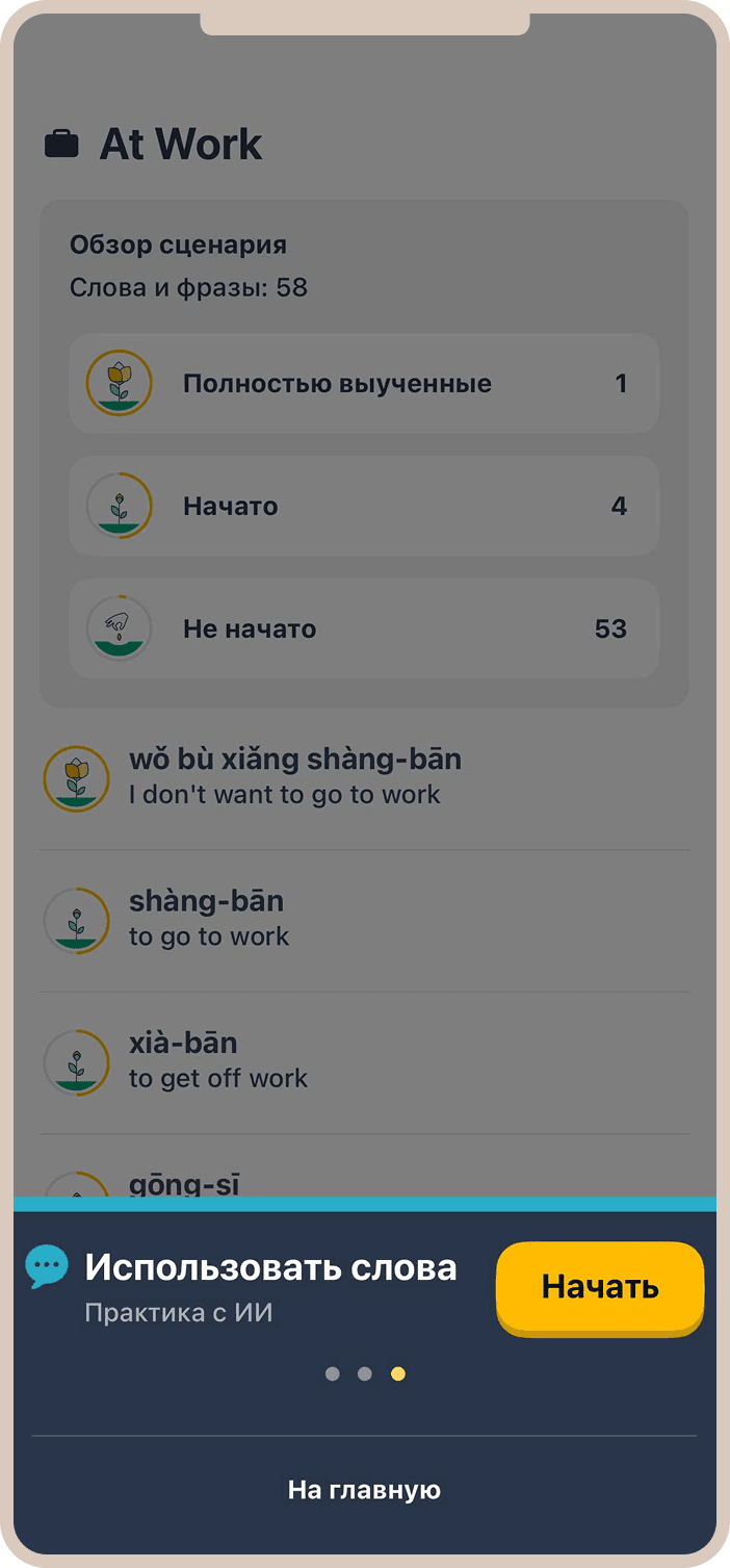 Персонализация обучения — приложение адаптирует материал под ваш темп обучения и особенности восприятия, формируя индивидуальную траекторию освоения языка.
