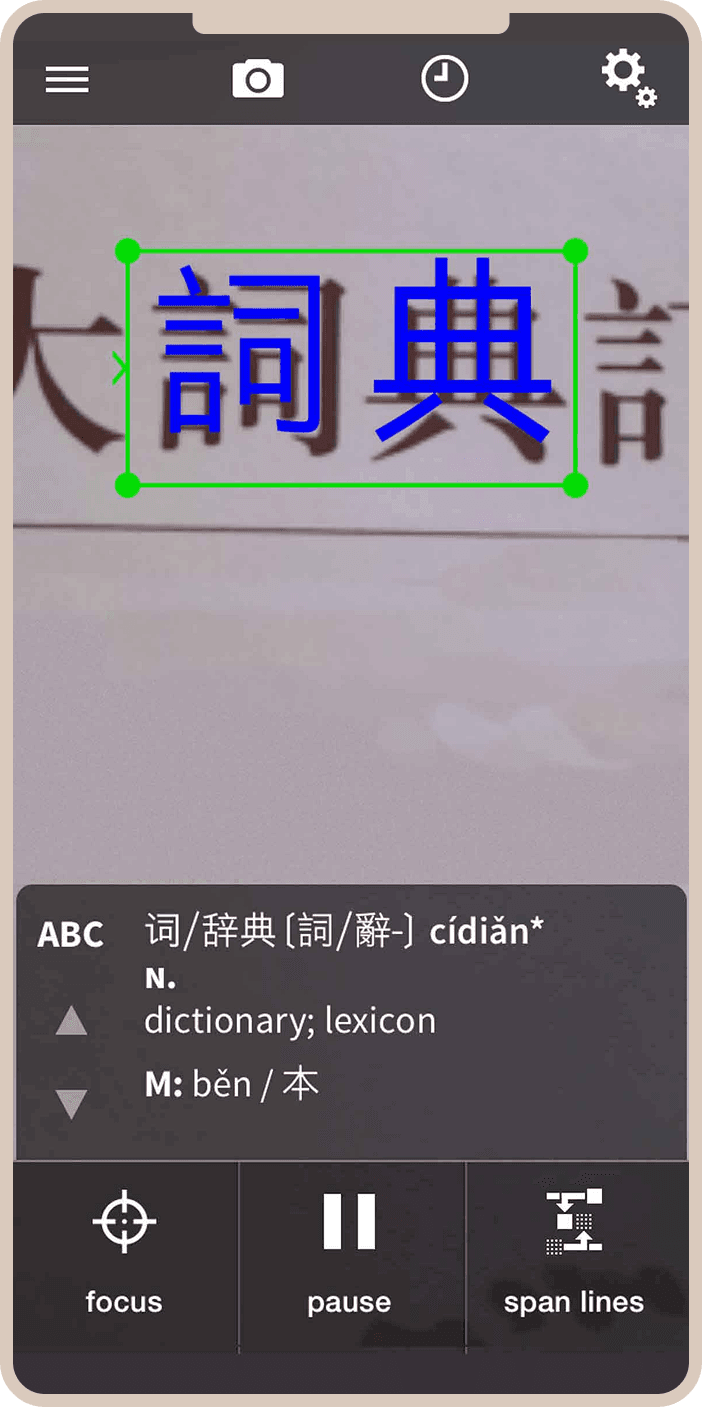 OCR-сканер — одна из самых впечатляющих функций. Наведите камеру на текст на китайском, и Pleco распознает иероглифы, позволяя тут же узнать их значение. Я часто использую эту функцию в китайских ресторанах или при чтении вывесок на улице.